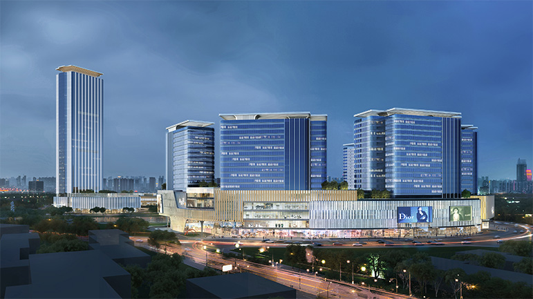 由五星寫字樓、希爾頓酒店、購物中心、步行商業街及產權式酒店等組成,海駿達集團將致力于將項目打造成為郫縣新的城市地標和城市重要的商業中心。